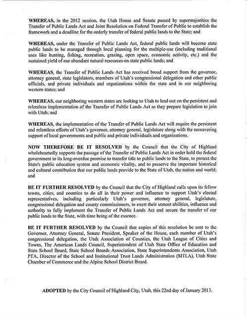 American Lands Council 10808 S River Front Pkwy Ste 3029 South Jordan UT 84095 Office: (801) 252-6622
